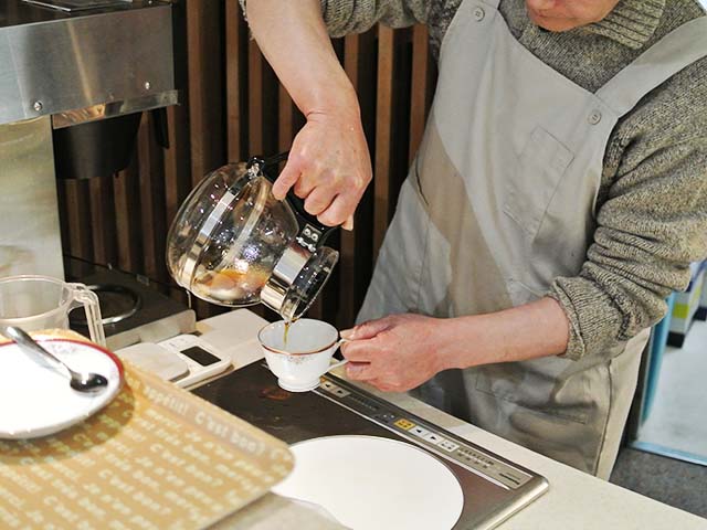 コーヒー、紅茶などのお飲み物は、JHC赤塚の国産小麦とよつ葉バターを使用した手作りクッキー付きです。クッキーやお饅頭、JHC志村の布製品を店内で販売しています。
