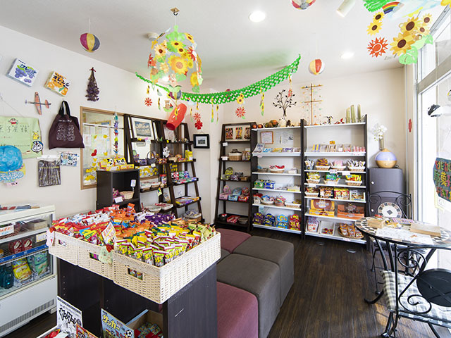 駄菓子やバザー品の販売を行っています。子供から大人まで、地域の方々と気軽に交流できるスペースづくりを目指しています。店舗運営のほか、地域のお祭りや学園祭等への出店も行っています。